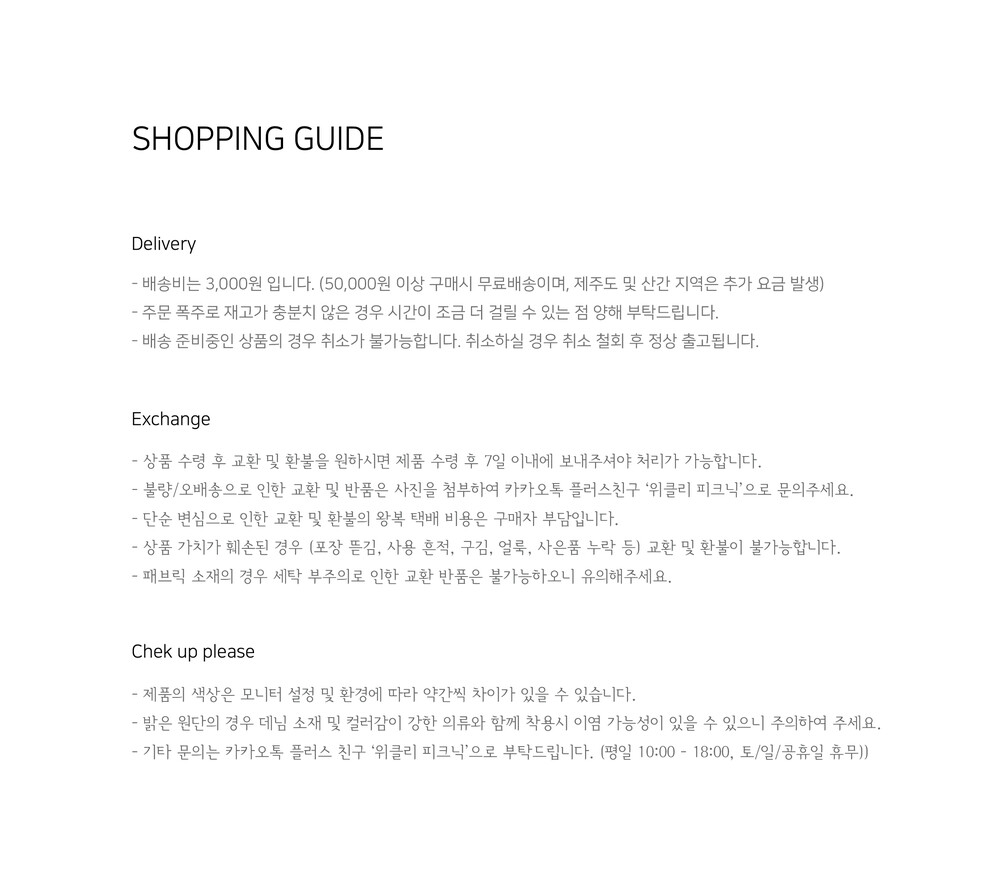 - 오배송, 제품 하자의 경우라도 사용 또는 세탁 후에는